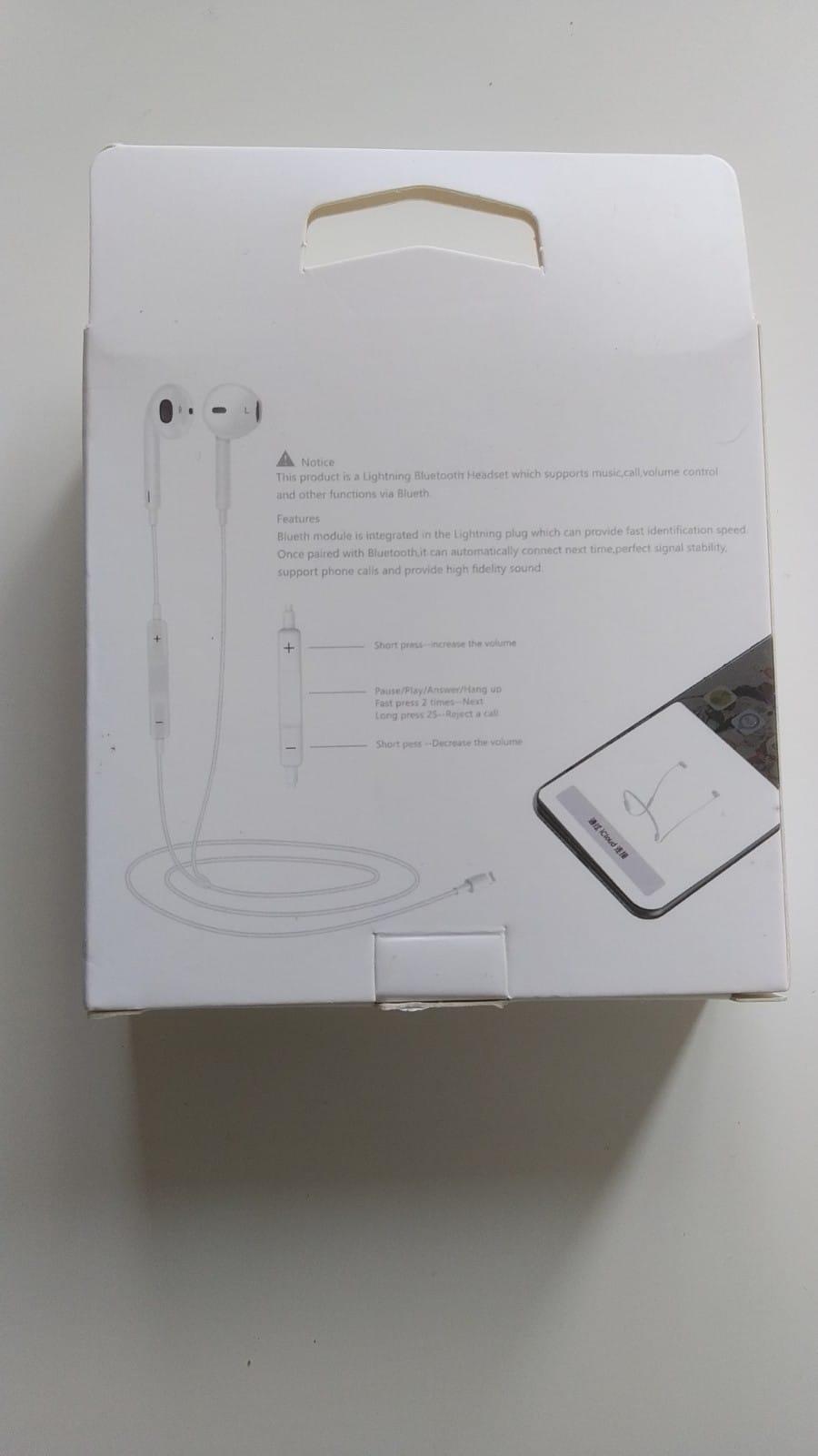 • This product is a lightening Bluetooth headset which supports music, call, volume control and others features via Bluetooth. • Bluetooth module is integrated in the lightening plug which can provide fast identification speed. • Once paired with Bluetooth, it can automatically connect next time, Perfect signal stability, support phone calls and provide high fidelity sound.